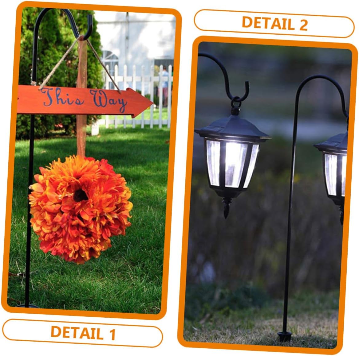 Package Include 6 x outdoor stake shepherd hooks Features -Material:Iron outdoor stake shepherd hook -Color:Black outdoor stake hooks for hanging -Size:74.00X16.00X3.00cm/29.08X6.29X1.18in hanging stake hook for garden -Delicate and simple appearance, can be used for outdoor, garden, lawn, courtyard and other places wind chime stand. -Simple structure, easy to install and simple to dissemble, bring much convenience to your daily life small shepherds hooks for outdoor. -Adopting from iron material, which is and for your use, can be used for long time garden stake hooks for hanging. -Also, shepherd hook with fine workmanship, with stake design, simple to use, convenient and useful outdoor stake hook. -Use this shepherds hook for hanging planters, flower pots, garden lights, bird feeders, lanterns, solar light hanging stake hook for outdoor.Goods Informationshepherd hooks outdoor If you are looking for a professional and useful garden stake shepherd hook, then your research is over here.lawn stake hook Adopted of iron material, the hook is and for long time use.hanging lawn stake hook That's because our garden stake shepherd hook can meet your need