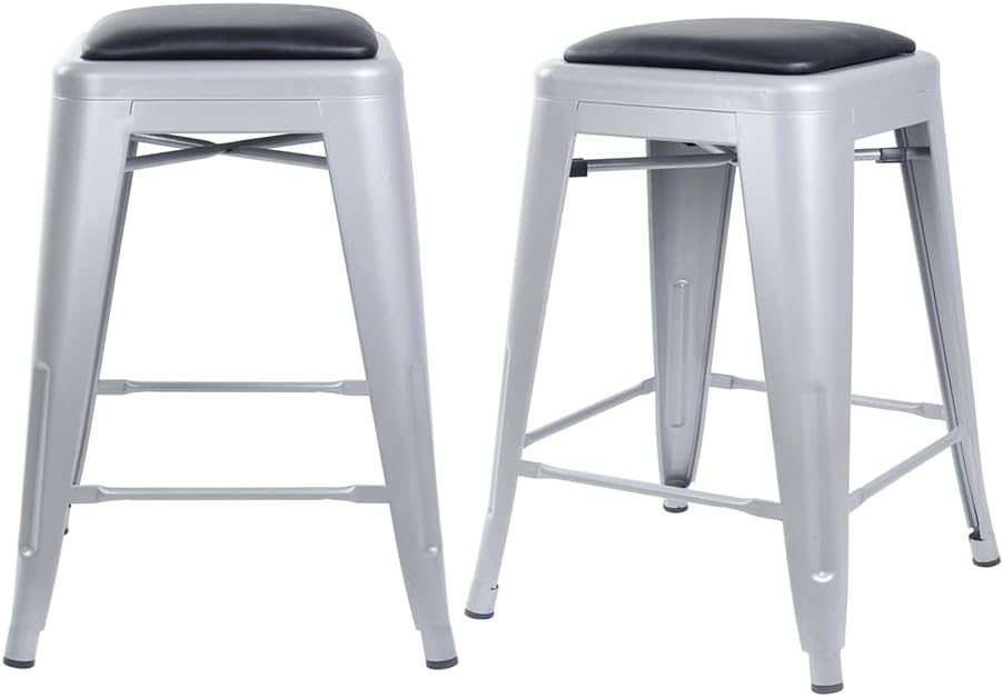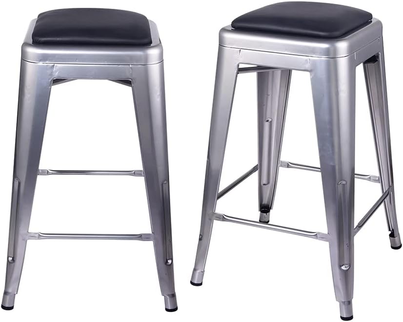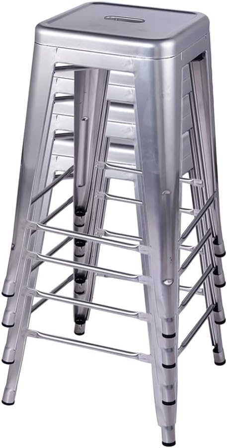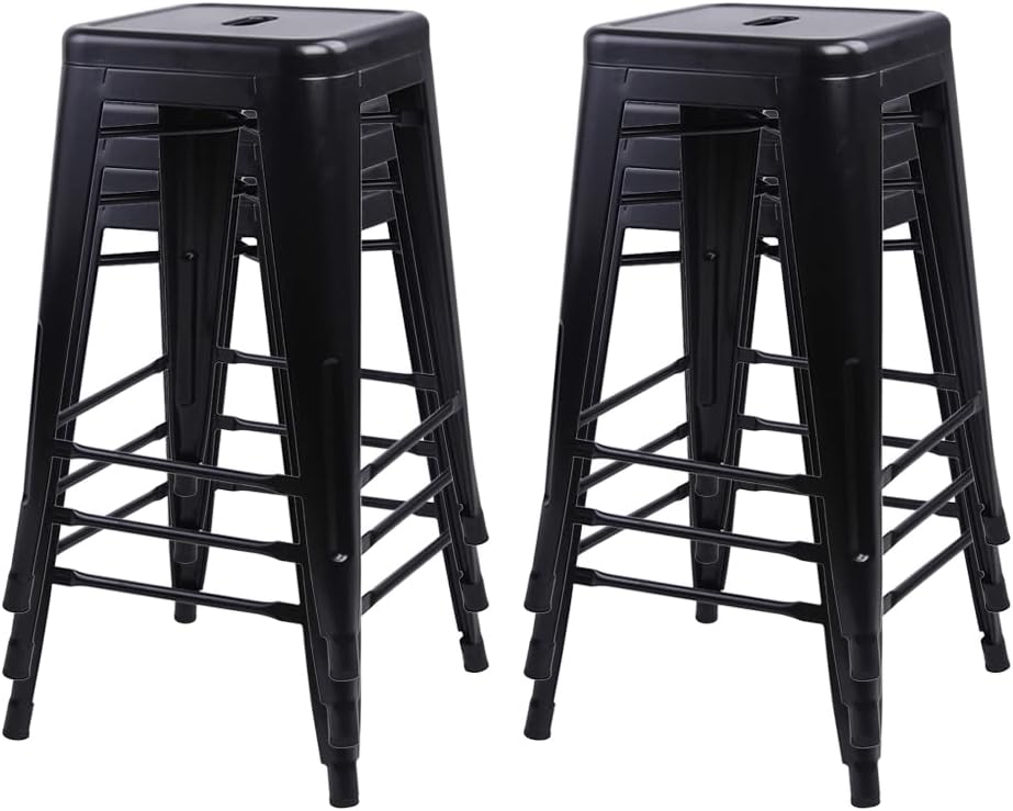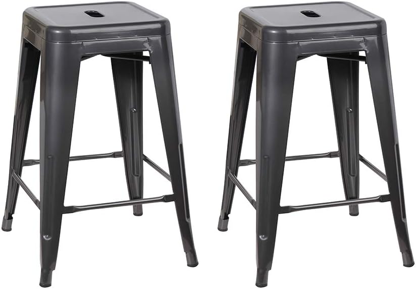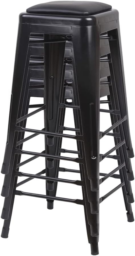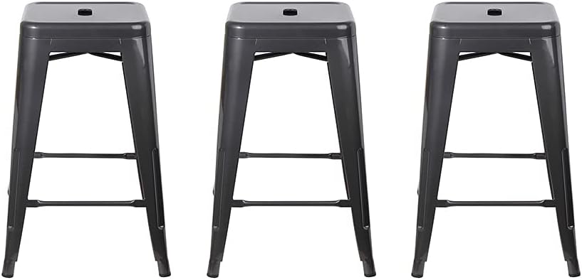Our coffee color 24-Inch backless metal stools are your only choice to exceptional functionality and decor Need a metal stool for your garage restaurant or brew pub? Our stools are durable and stylish enough Need a metal stool for your kitchen bar or game room? Our stools are chic and affordable Our stools are stackable and have a built in carrying handle to pick them up and store them when not in use We only use the highest quality construction our stools feature a super strong iron alloy that is made to last and lightweight Each stool can support up to 300 lbs. but only weighs less than 10 lbs. We've exceeded the industry standard by installing a stability brace under the seat in every stool This stool has an enameled coating and features a scratch resistant finish We've also added rubber feet to protect you your guests your customers and your floors The design of middle backcan make you sit more comfortable Each stool stands 24-Inch tall with a seat measuring 12 x 12-Inch and a base at the legs measuring 16 x 16-Inch