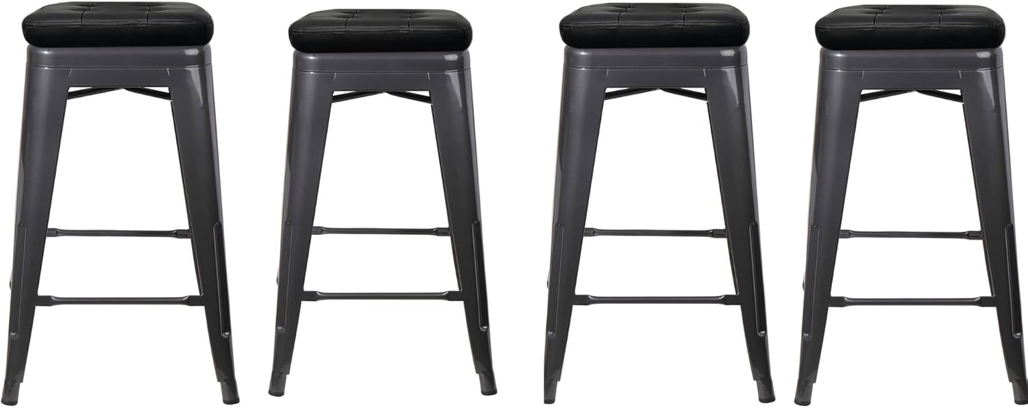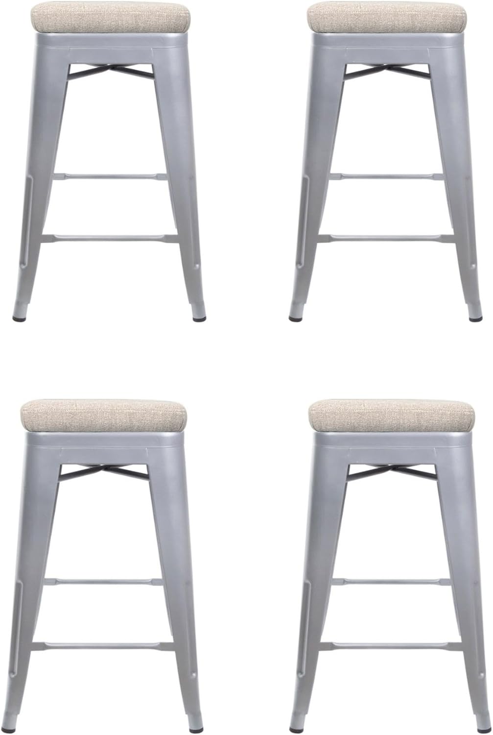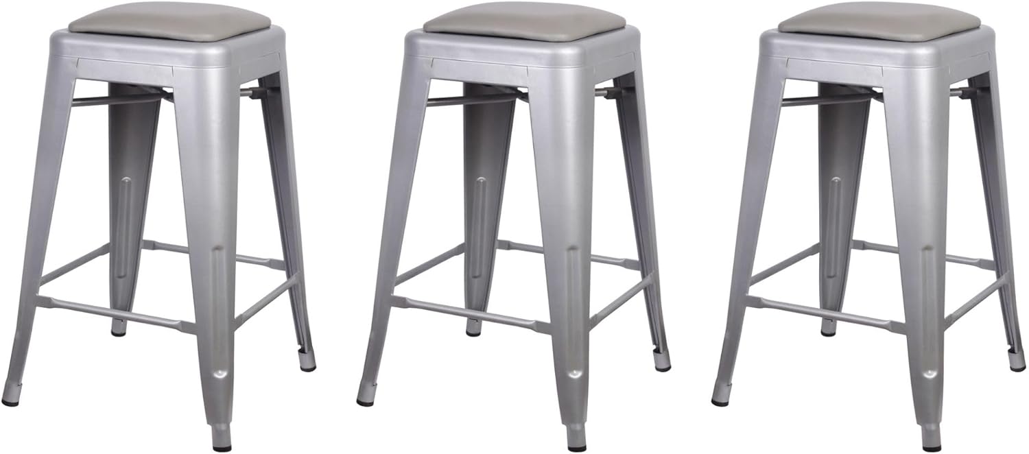 Our coffee color 24-Inch backless metal stools are your only choice to exceptional functionality and decor Need a metal stool for your garage restaurant or brew pub? Our stools are durable and stylish enough Need a metal stool for your kitchen bar or game room? Our stools are chic and affordable Our stools are stackable and have a built in carrying handle to pick them up and store them when not in use We only use the highest quality construction our stools feature a super strong iron alloy that is made to last and lightweight Each stool can support up to 300 lbs. but only weighs less than 10 lbs. We've exceeded the industry standard by installing a stability brace under the seat in every stool This stool has an enameled coating and features a scratch resistant finish We've also added rubber feet to protect you your guests your customers and your floors The design of middle backcan make you sit more comfortable Each stool stands 24-Inch tall with a seat measuring 12 x 12-Inch and a base at the legs measuring 16 x 16-Inch