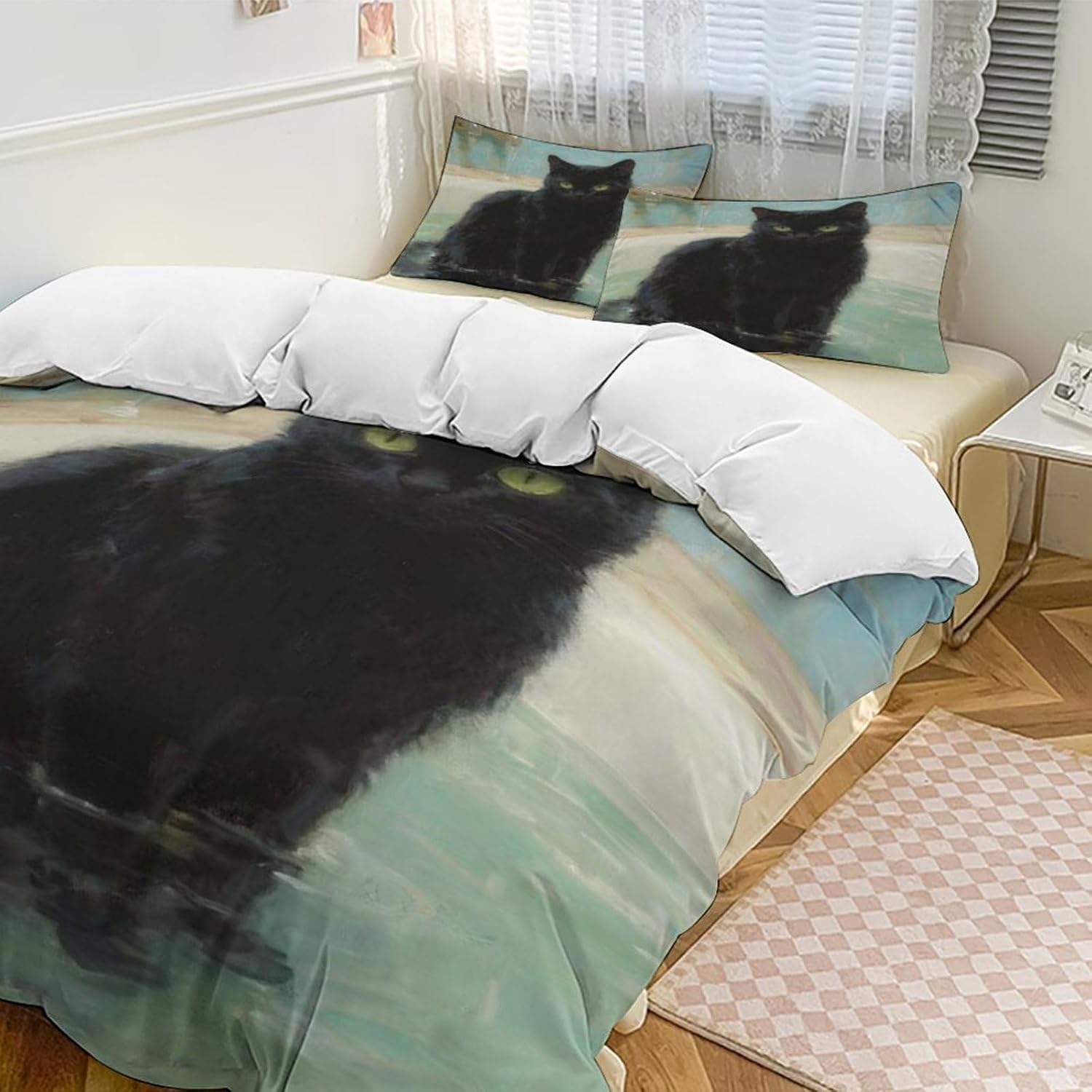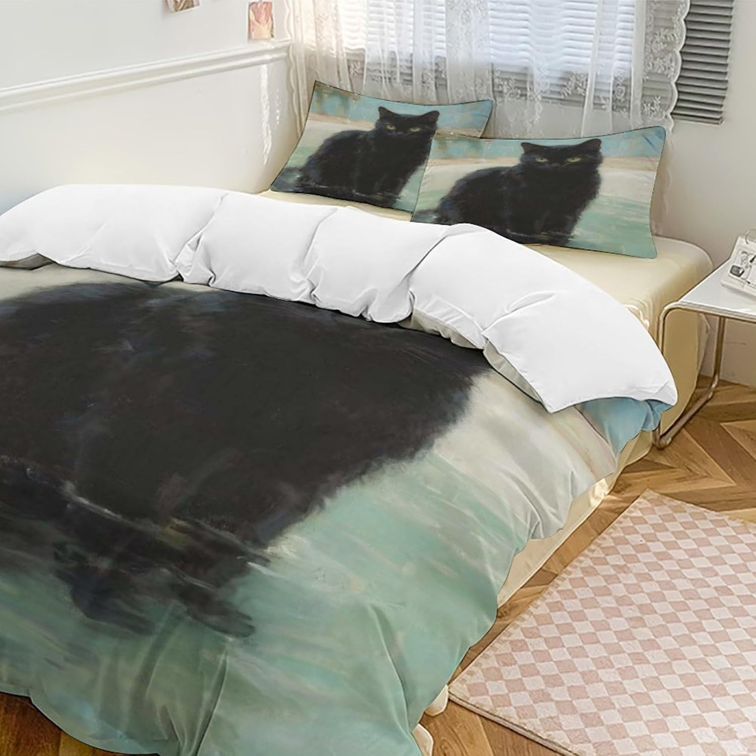 This Anime Girl king size comforter set is designed to enhance your sleep quality. Made from select microfiber fabric, it's lightweight, soft, and highly breathable, ensuring a comfortable and restful night's sleep. The set includes pillowcases, sheets, and a duvet cover, fully meeting your everyday bedding needsThe stylish single-sided heat transfer pattern on this confort Bed Sheet set queen combines comfort and aesthetics, with vibrant colors to create a warm and inviting atmosphere for your cozy home, stylish hotel, themed room, or comfortable vacation homeExquisite craftsmanship showcases superior quality, with fine stitching and a concealed metal zipper reflecting meticulous attention to detail. The microfiber fabric not only boasts excellent pilling resistance and colorfastness but also won't shrink or fade even after high-temperature treatment, ensuring durability. The thickened design enhances the feel and warmth, and the fabric is easy to clean, hand-washing or machine-washing at room temperature without bleaching